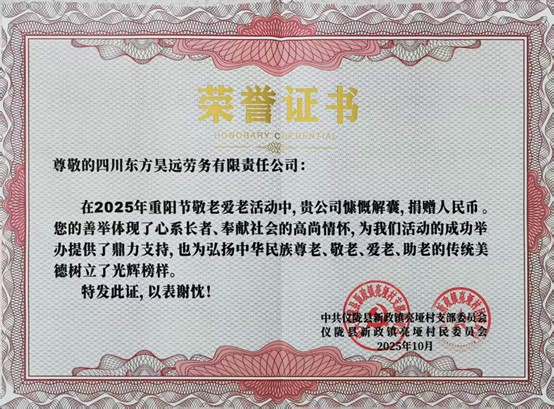 昊遠(yuǎn)公司獲儀隴縣新政鎮(zhèn)敬老愛(ài)老活動(dòng)榮譽(yù)表彰